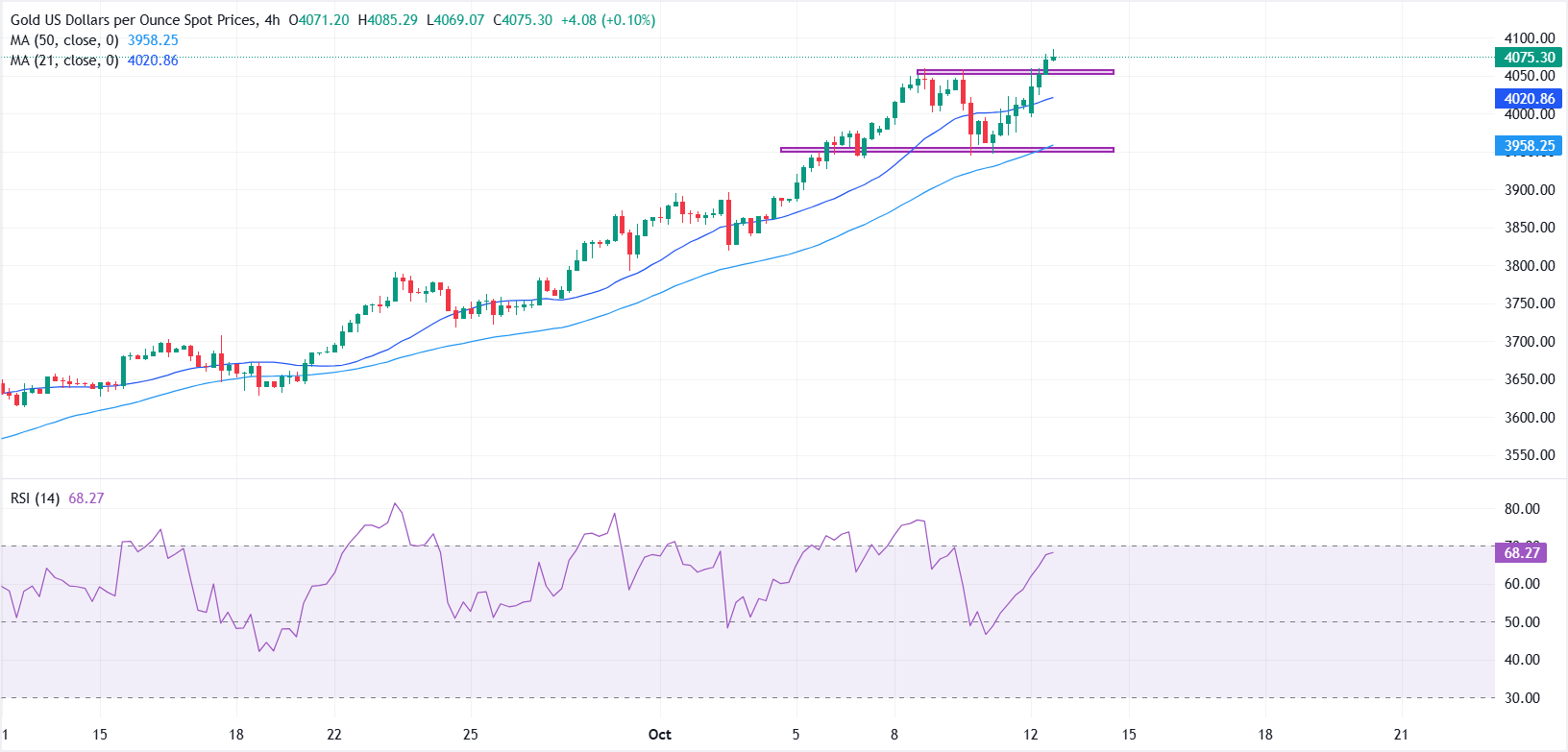 技术分析:XAU/USD目标4100美元,上涨趋势增强