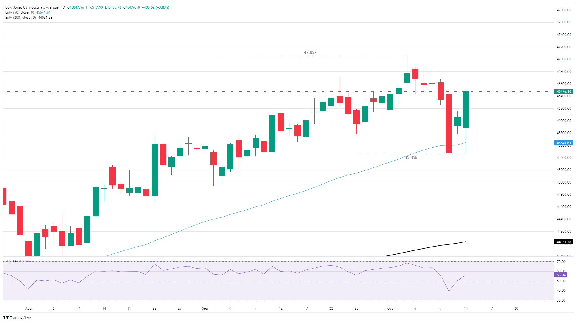 • 道琼斯指数在周二逆转早盘亏损,重新测试46,500点以上。
