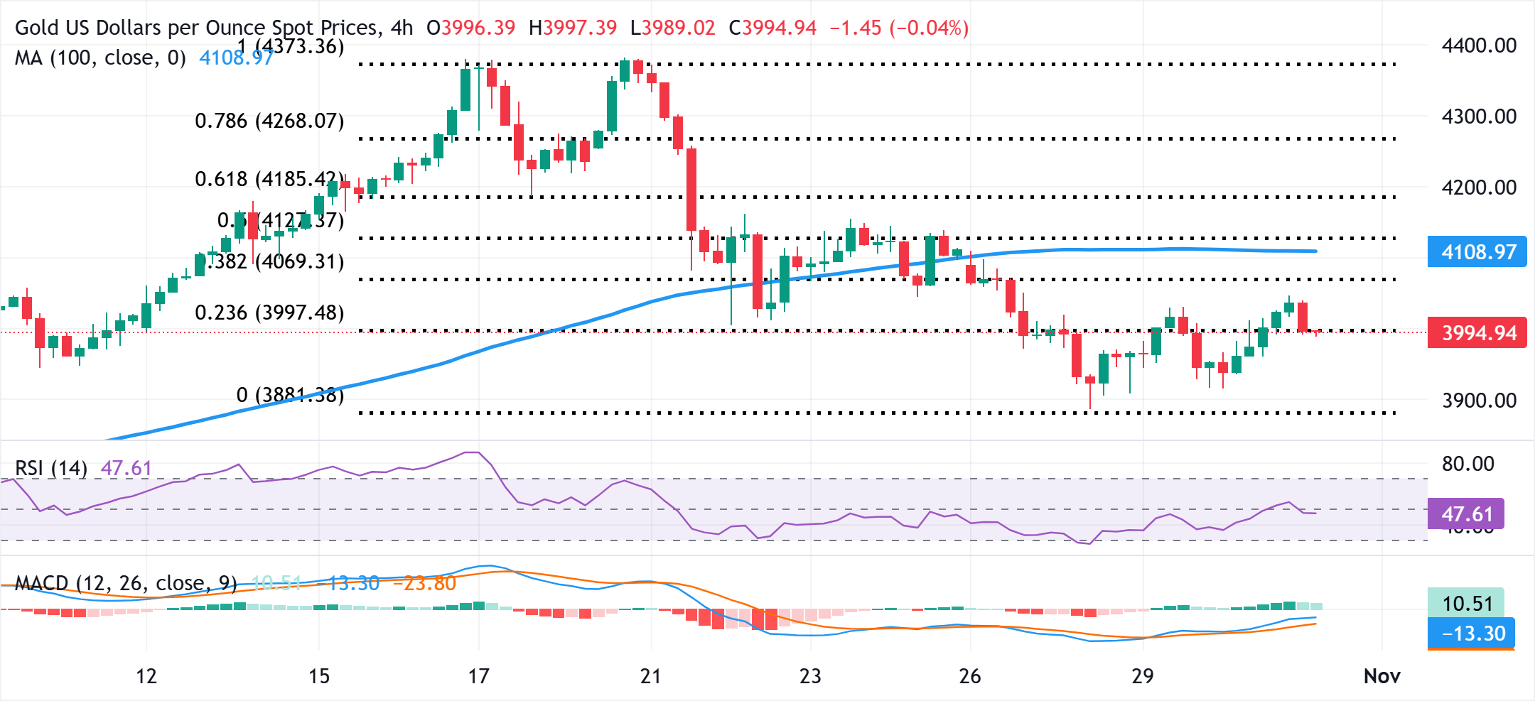 - 美国政府停摆已进入第五周,国会在共和党支持的拨款法案上陷入僵局,助长了经济担忧。这可能会阻止美元多头进行激进押注,而持续的地缘政治风险可能為避险贵金属提供一些支持,并帮助限制进一步的损失。