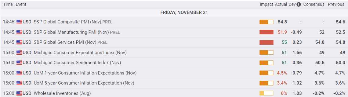 密歇根大学(UoM)消费者信心调查结果也好于预期,进一步增强了投资者的情绪,為这一周的市场恐慌画上句号。UoM消费者信心和预期指数在11月份均超过预期上升,1年和5年消费者通胀预期也有所下降。