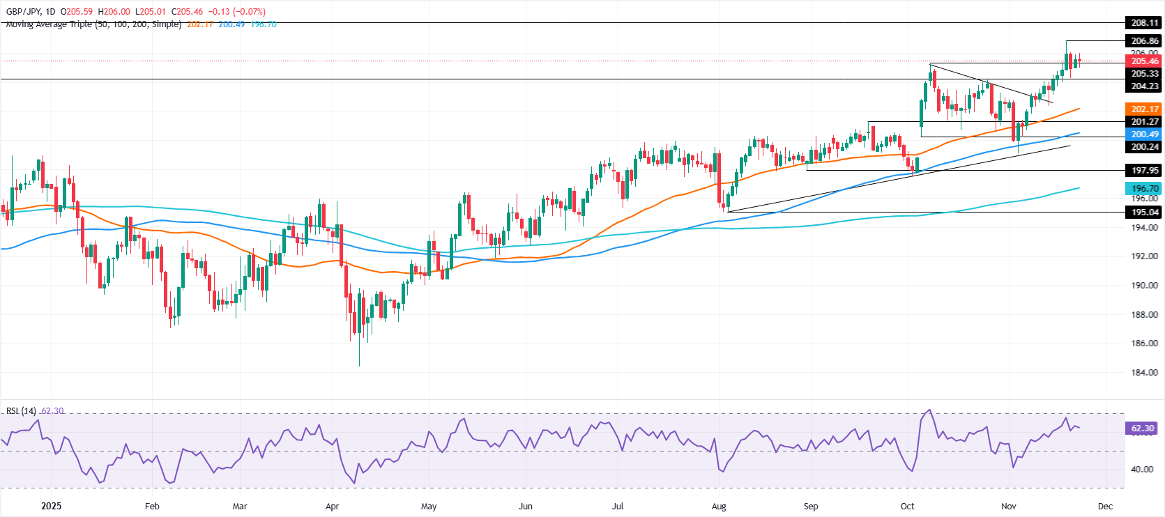 英镑/日元价格预测:在日元上涨的背景下,价格在205.50下方盘整