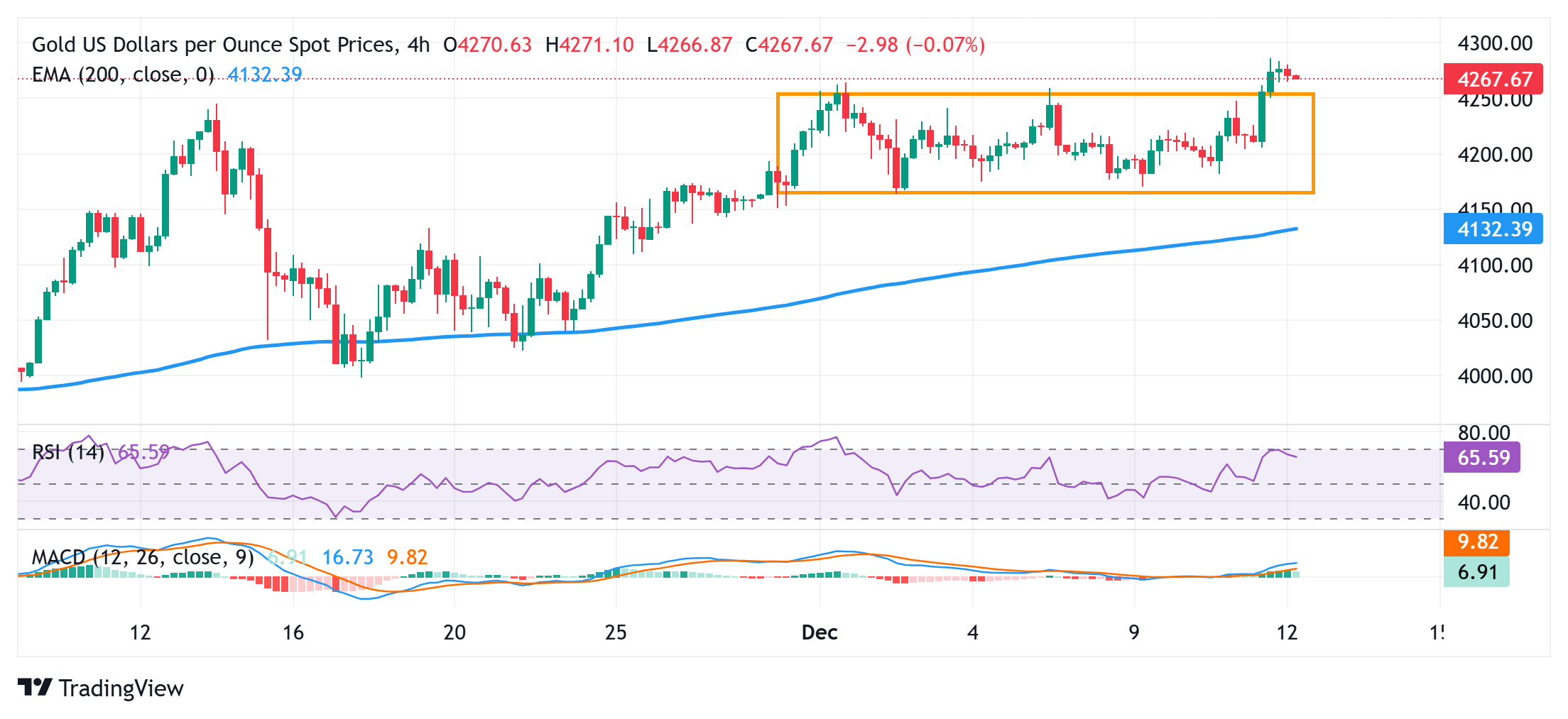 另一方面,4300美元的关口现在似乎成為了一个直接的障碍,突破后XAU/USD可能攀升至4328-4330美元附近的下一个相关阻力位。动能可能进一步延续,使黄金有望挑𢧐历史最高点,约在4380美元区域,该点位于10月触及。若突破4400美元整数关口,将被视為看涨交易者的全新触发点,并為商品自10月月度低点以来的持续上升趋势的延续奠定基础。