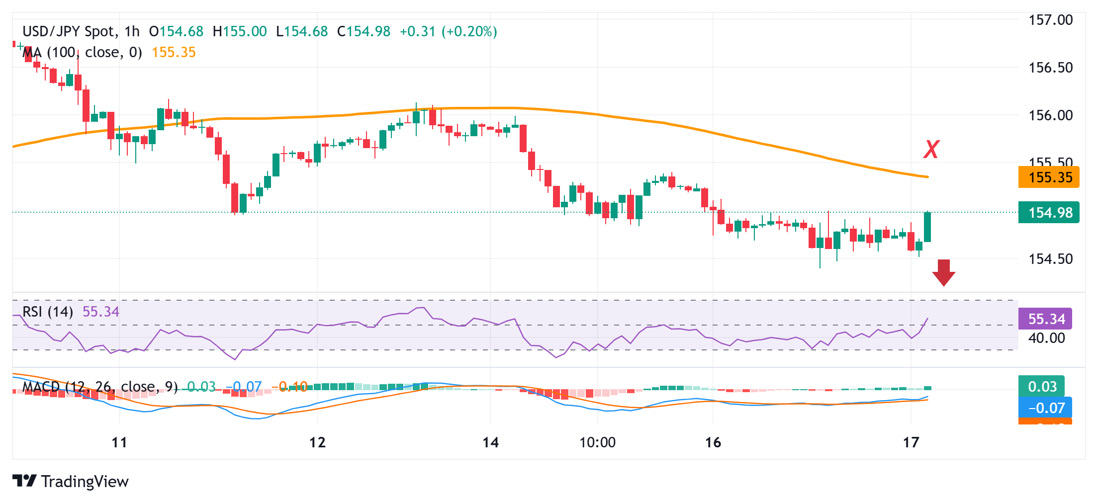 美元/日圆需要突破155.25-155.30,100小时简单移动平均缐,以支持进一步上涨的案例