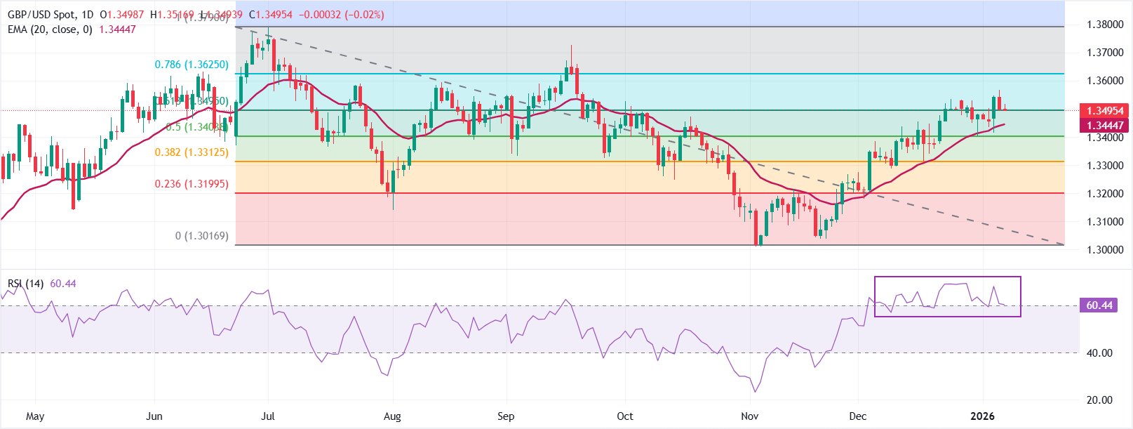 技术分析:GBP/USD目标保持在1.3500的61.8%斐波那契回撤位