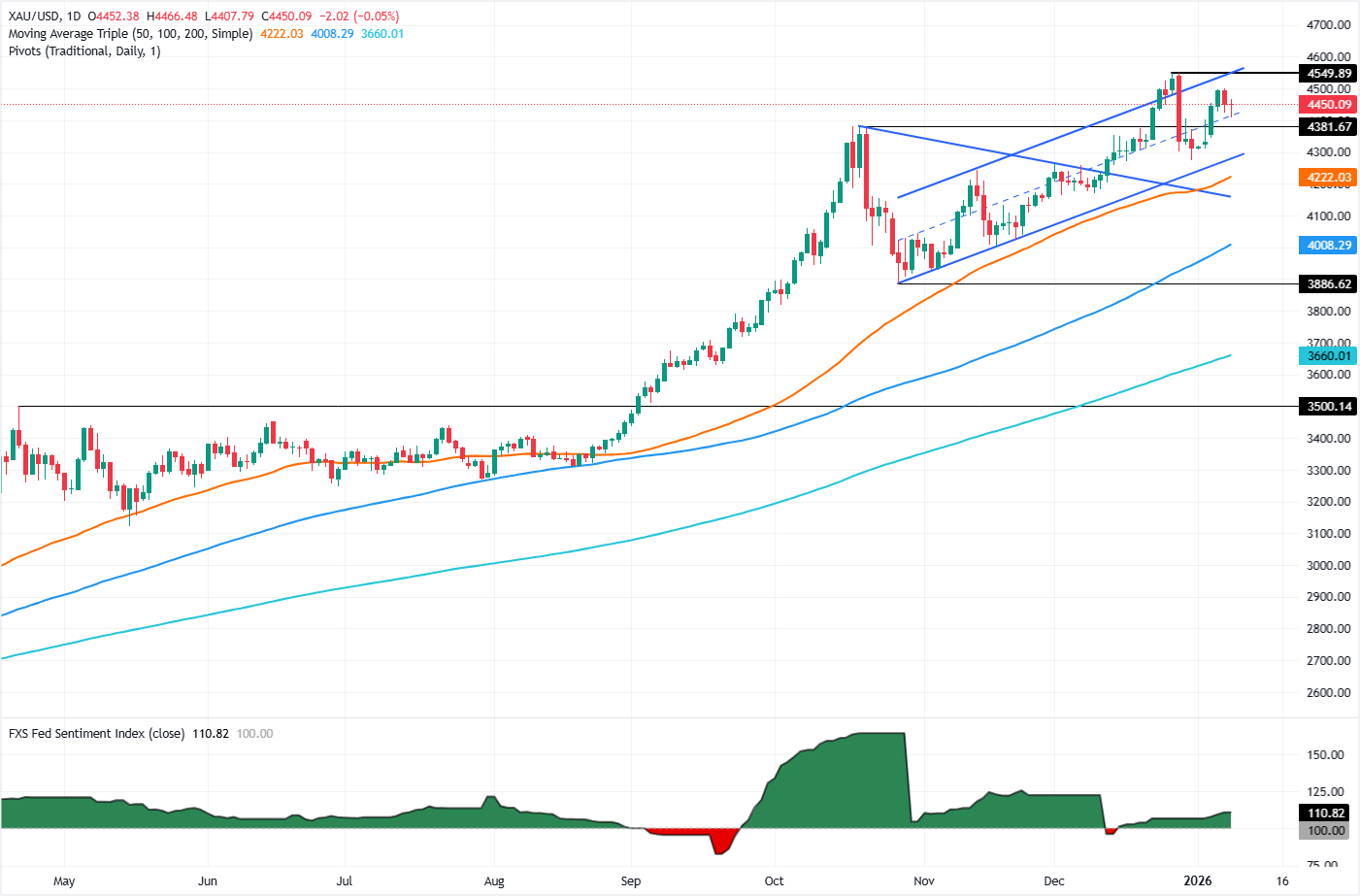 • 黄金在跌至4407美元后保持平稳,因美国收益率和美元延续反弹。