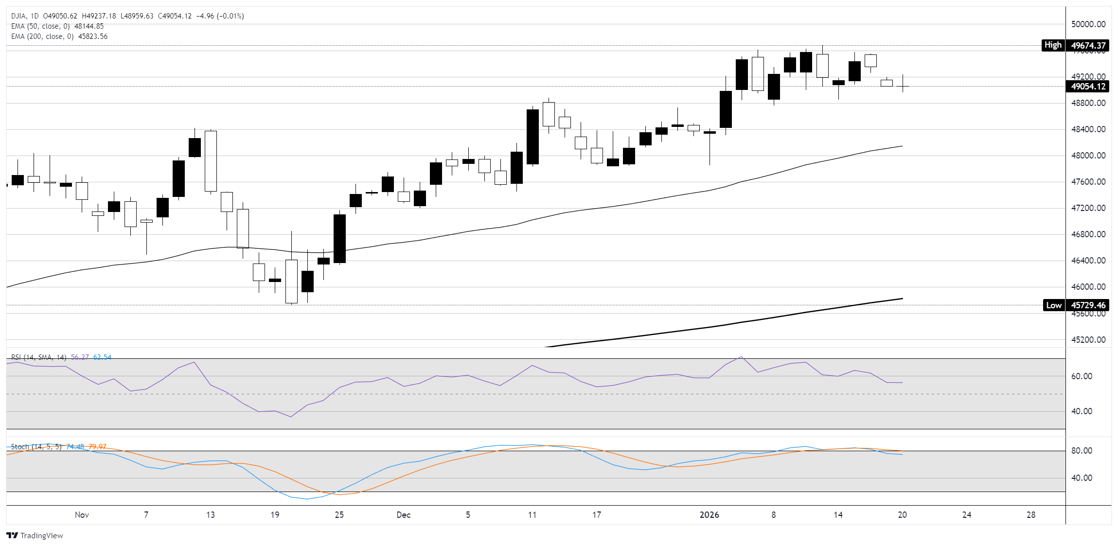 道琼斯工业平均指数(DJIA)下跌1.4%,标准普尔500指数和纳斯达克综合指数分别下跌1.6%和1.8%,将这两个指数推入年度负值区间。VIX指数首次超过20,反映出不确定性上升。特朗普概述了计划,从2月1日起对八个北约国家的进口征收10%的关税,到6月将增至25%,并单独威胁对法国葡萄酒和香槟征收200%的关税。欧洲领导人已表示强烈反对,并据报考虑报复措施,增加了更广泛升级的风险。