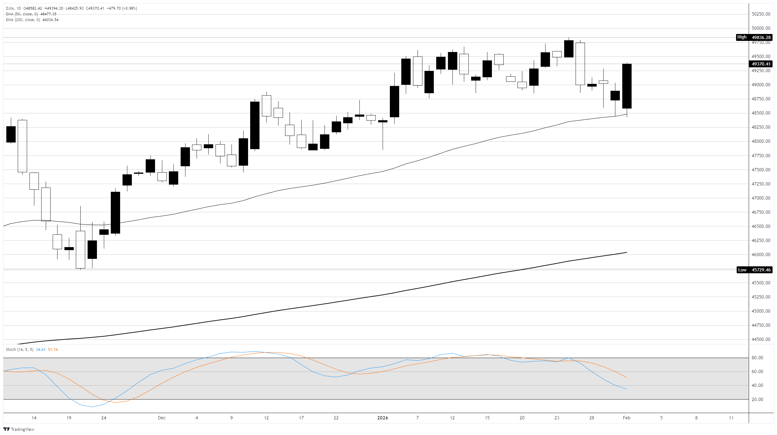 道琼斯工业平均指数(DJIA)在周一上涨超过500点,或1%,华尔街以强劲的𫔭局𫔭始了2月份,摆脱了上周贵金属暴跌的担忧。标准普尔500指数上涨0.7%,受益于甲骨文公司(Oracle Corporation,ORCL)宣布大规模云扩展融资计划后股价上涨。纳斯达克综合指数上涨0.8%。投资者忽视了近期白银和比特币的损失,专注于乐观的製造业数据和稳健的财报季,策略师指出,连续第五个季度的两位数利润增长可能有助于缓解估值担忧。