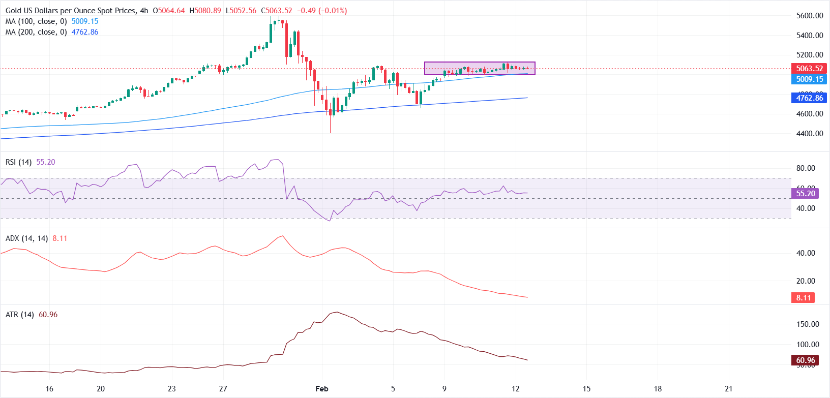 技术分析:XAU/USD在5000美元上方盘整,动能减弱
