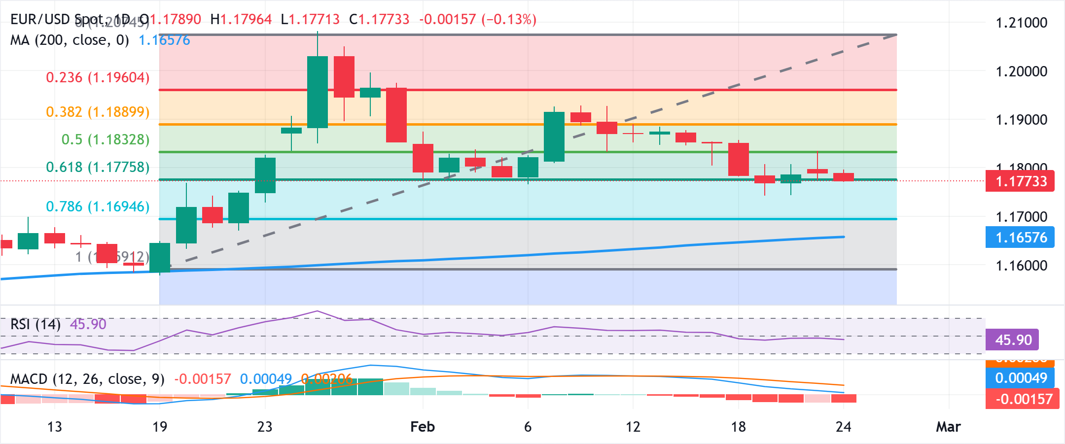欧元/美元价格预测:空头在1.1775附近徘徊于61.8%斐波那契支撑位