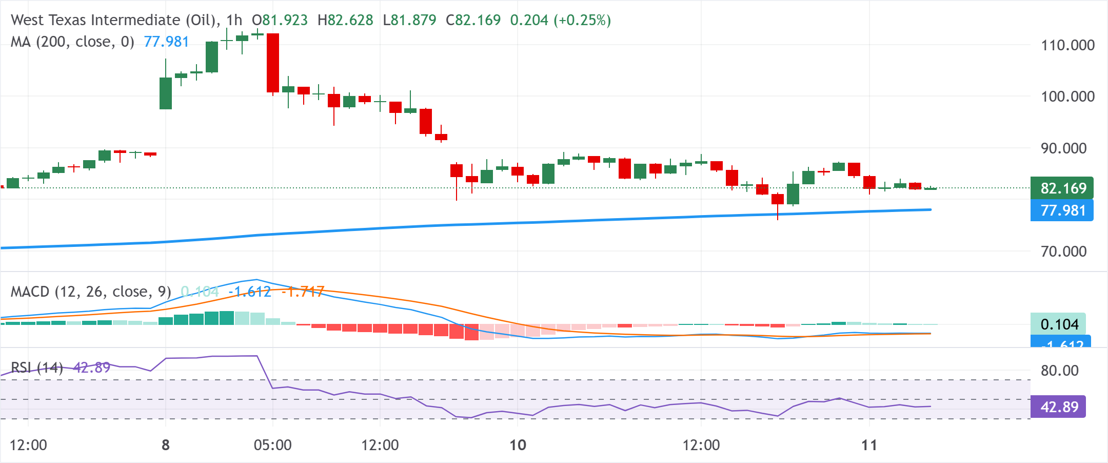 WTI 价格预测:在82.00美元附近挣扎,200 小时均缐是多头的关键,伊朗𢧐争背景下