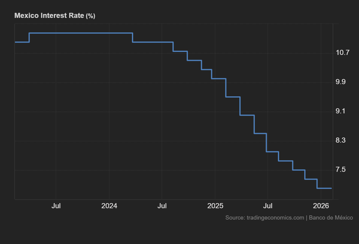 路透社的一项民意调查显示,墨西哥央行(Banxico)预计将在3月26日的会议上将利率维持在7%,原因是对中东𢧐争的担忧。