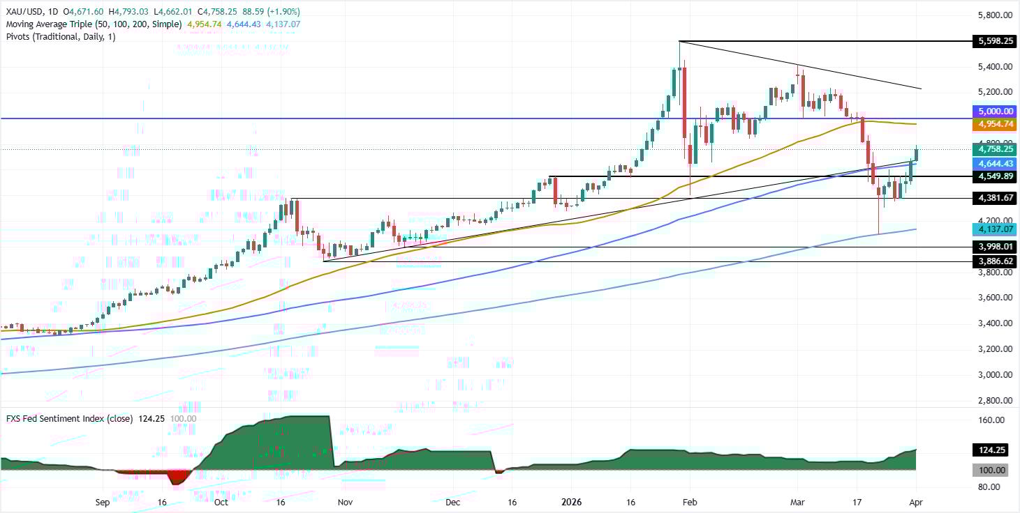 相反,若在4,800美元遇阻,可能加剧对4,700美元的回测,随后是100日SMA 4,625美元。若进一步走弱,3月26日的摆动低点约4,351美元将成為关注焦点。