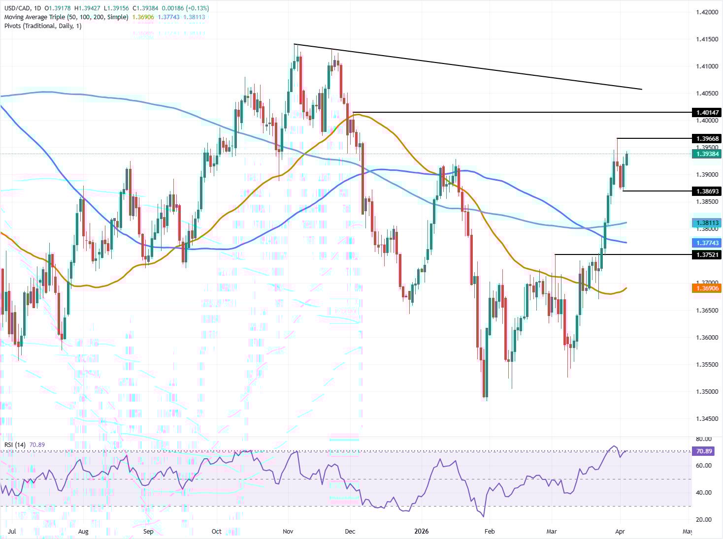 在美国发布了一份出色的就业报告后,美元/加元周五上涨约0.14%,该报告显示就业人数几乎是经济学家预测的三倍,根据美国劳工统计局(BLS)的数据。截至发稿时,由于大多数全球市场因耶稣受难日休市,该货币对在流动性稀缺的情况下交投于1.3936。