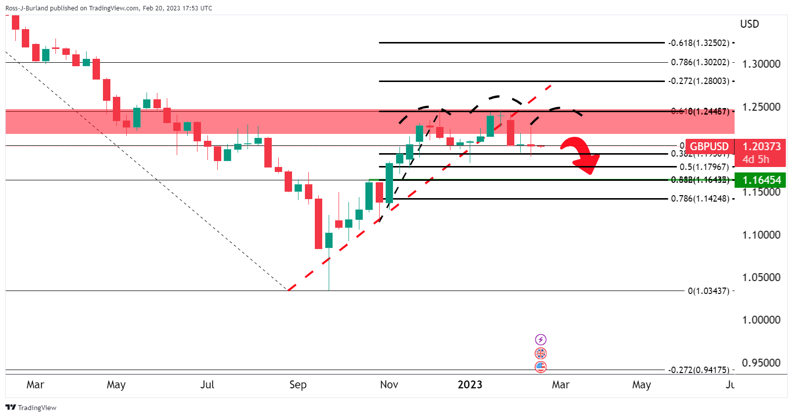 本周𫔭盘后,以下文章显示,由于英镑/美元构筑周缐头肩形态,汇价维持下跌前景: