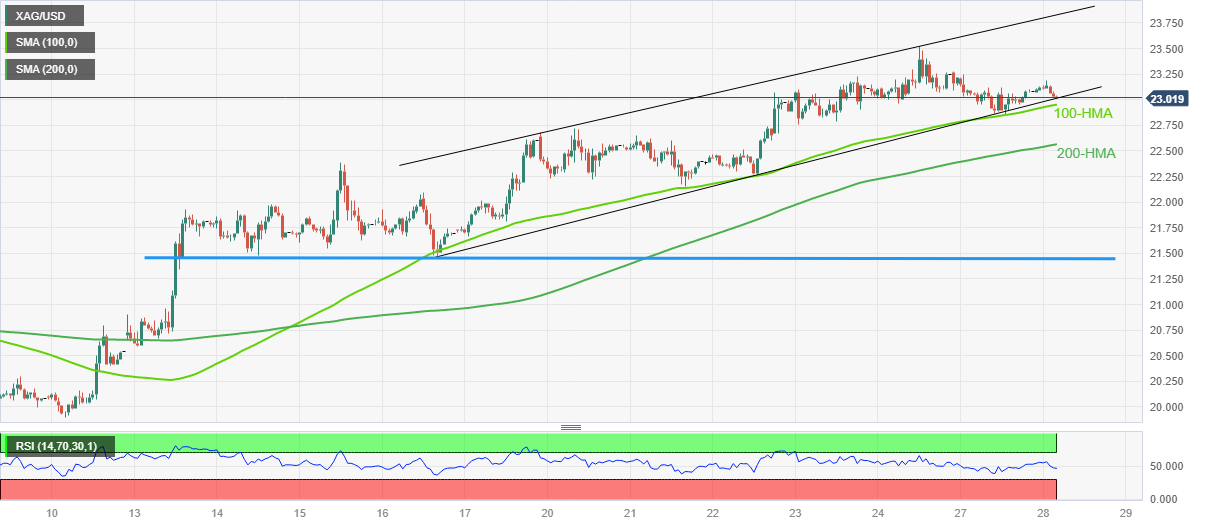 - 相对强弱指标(RSI)持稳之际,8日前的看涨通道和100小时均缐挑𢧐白银/美元空头