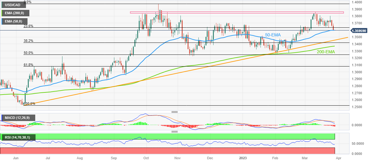 值得注意的是,美元/加元未能突破自2022年9月以来建立的1.3845-65附近关键水平阻力,且MACD信号看跌、相对强弱指标(14)看跌未处在超卖,使空头充满希望。