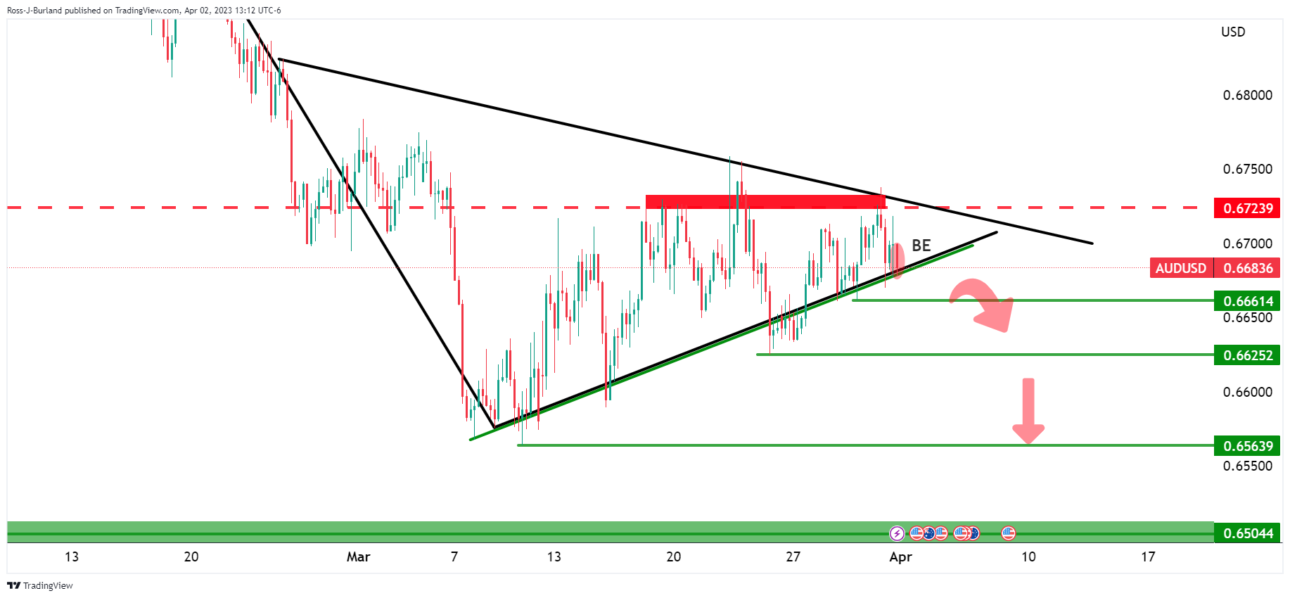 - 澳元/美元在最后一根4小时蜡烛上的看跌吞噬被关注。