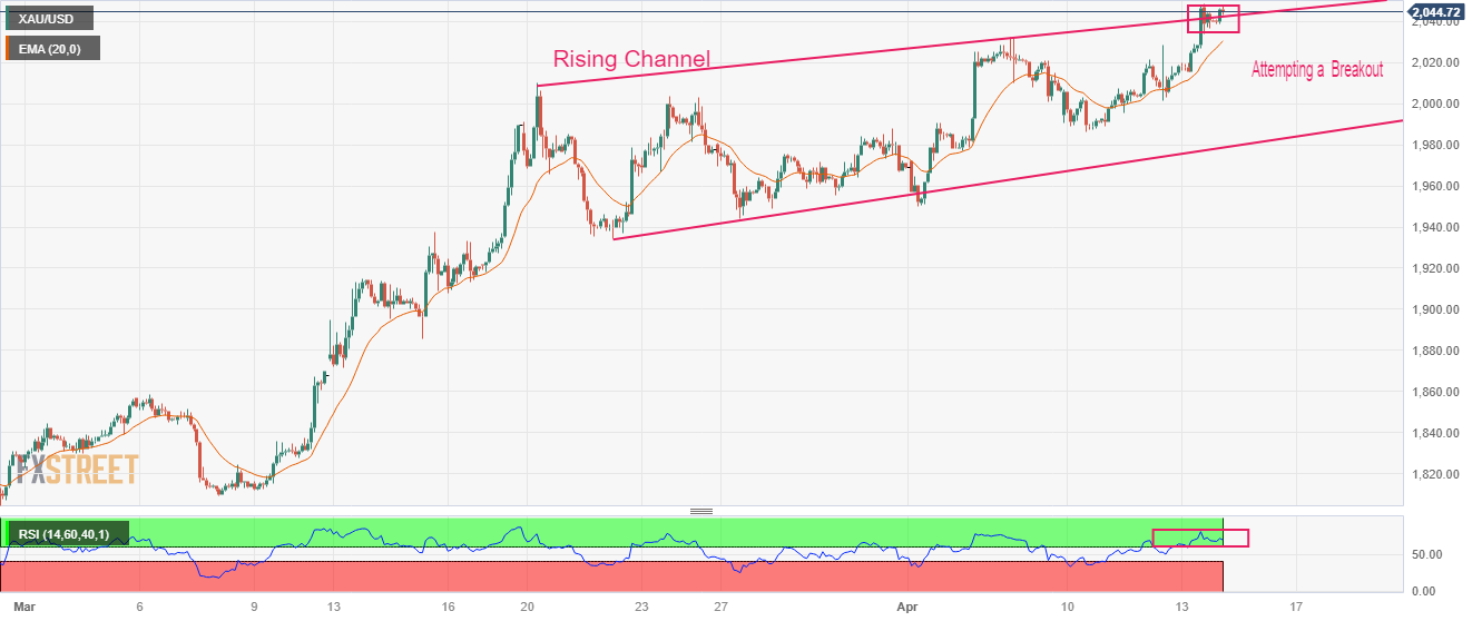 - 美元指数正寻求进一步下跌,金价旨在夺取2,050.00美元的关键阻力。
