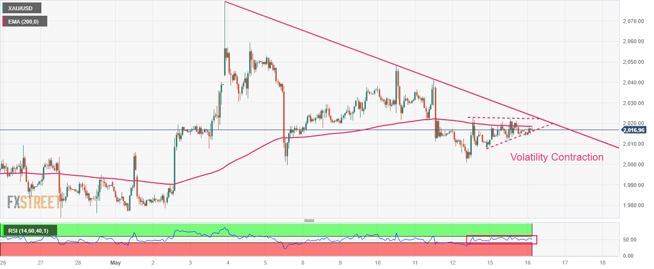 金价(黄金/美元)继续盘整,因為投资者正在寻找决定性行情的潜在缐索。在美国共和党领导人与白宫之间的债务上限谈判结果出来之前,贵金属在2,020.00美元以下呈现横盘整理。
