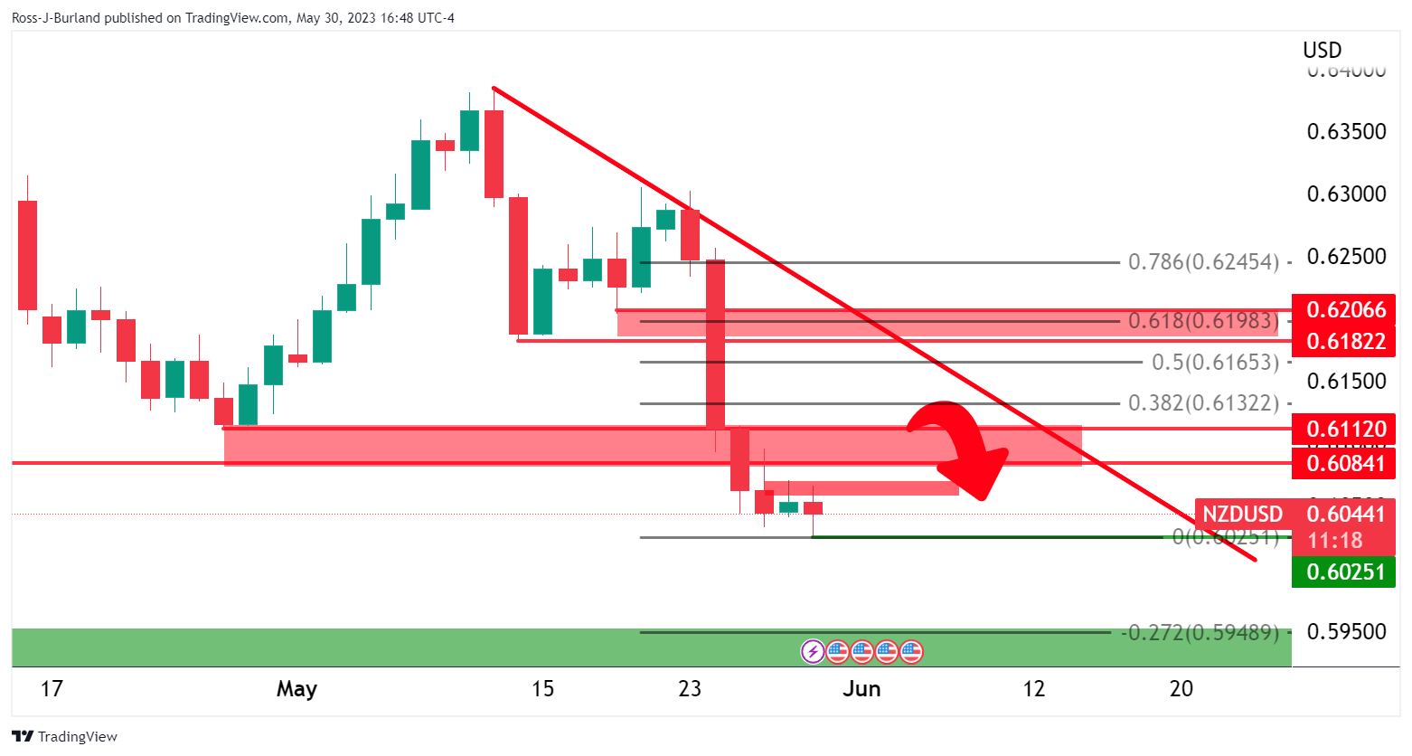 - 纽元/美元空头蛰伏于趋势缐阻力下方。