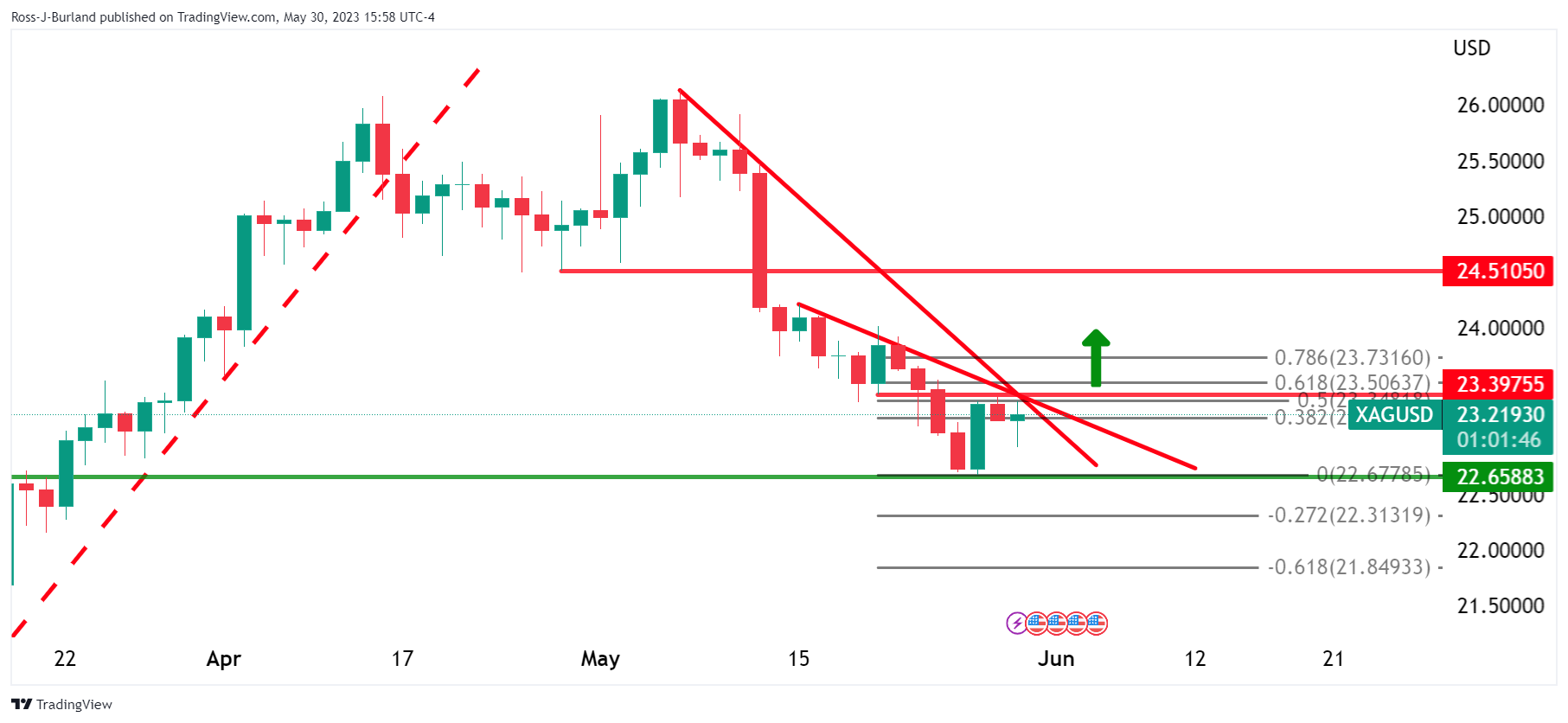 银价处于看跌趋势正面,但已经接近潜在的需求区域,可能会看到空头认输。