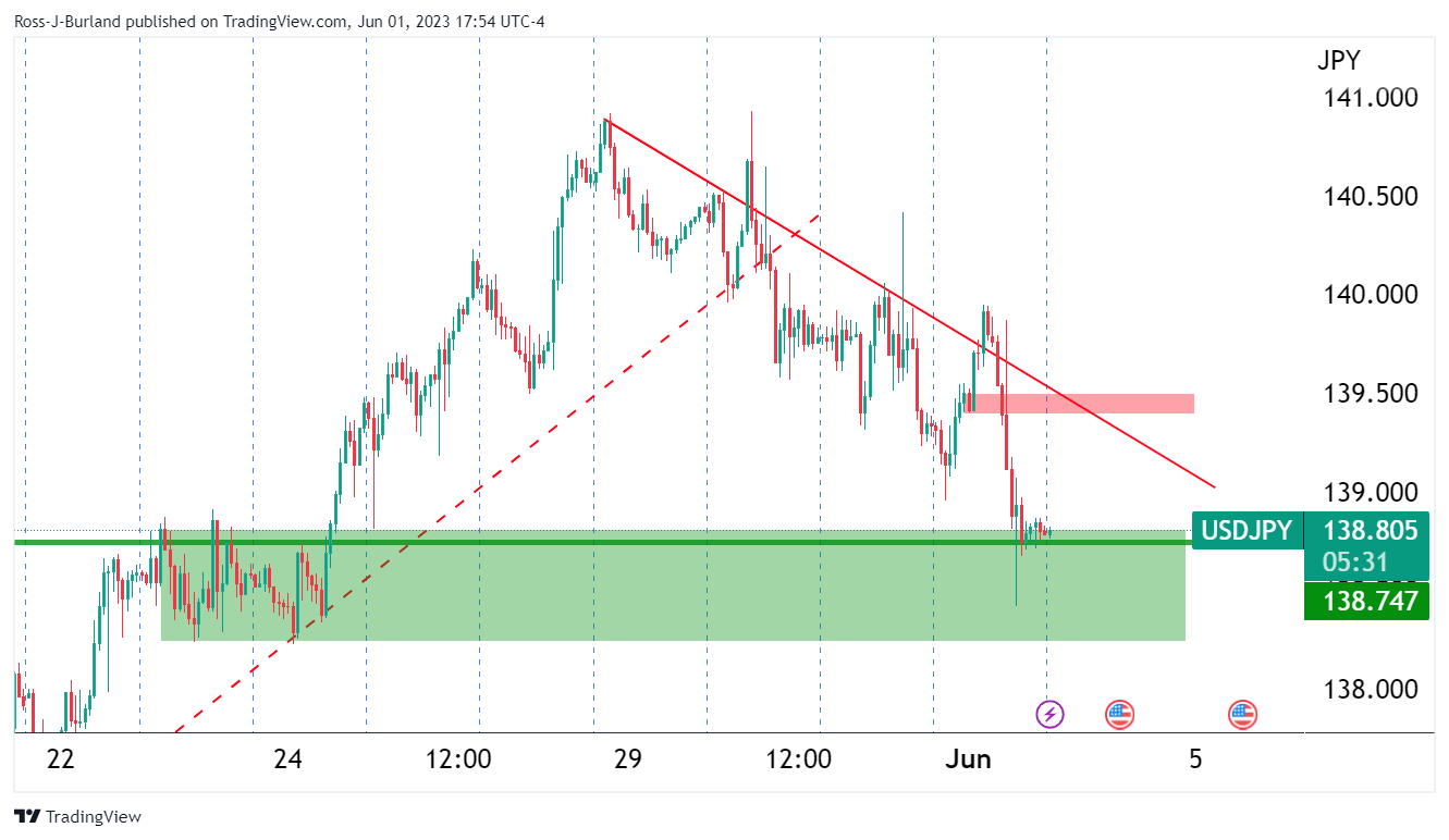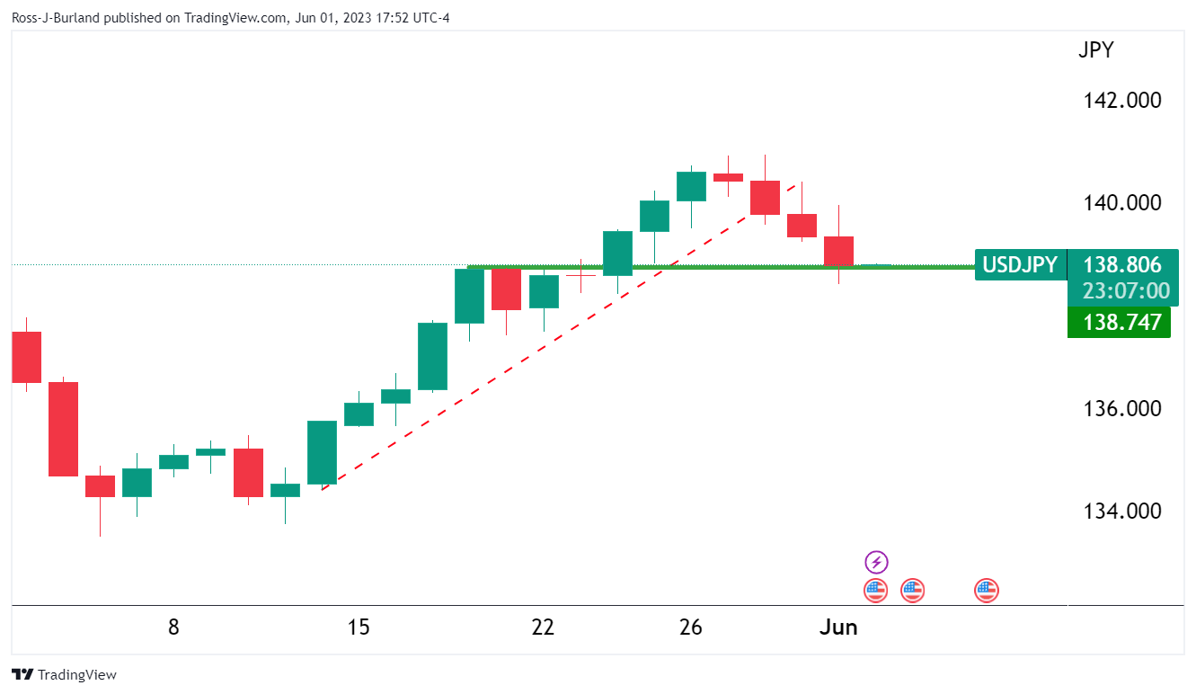 周四,美元/日元下跌,美元有望创下近一个月来的最差日缐跌幅。美国製造业数据和美联储官员讲话加大美联储本月晚些时候可能会暂停加息的预期,正吸引空头。