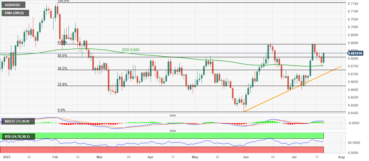 澳元/美元价格分析:延续澳洲就业数据引发的自200EMA以来的涨势,指向0.6850