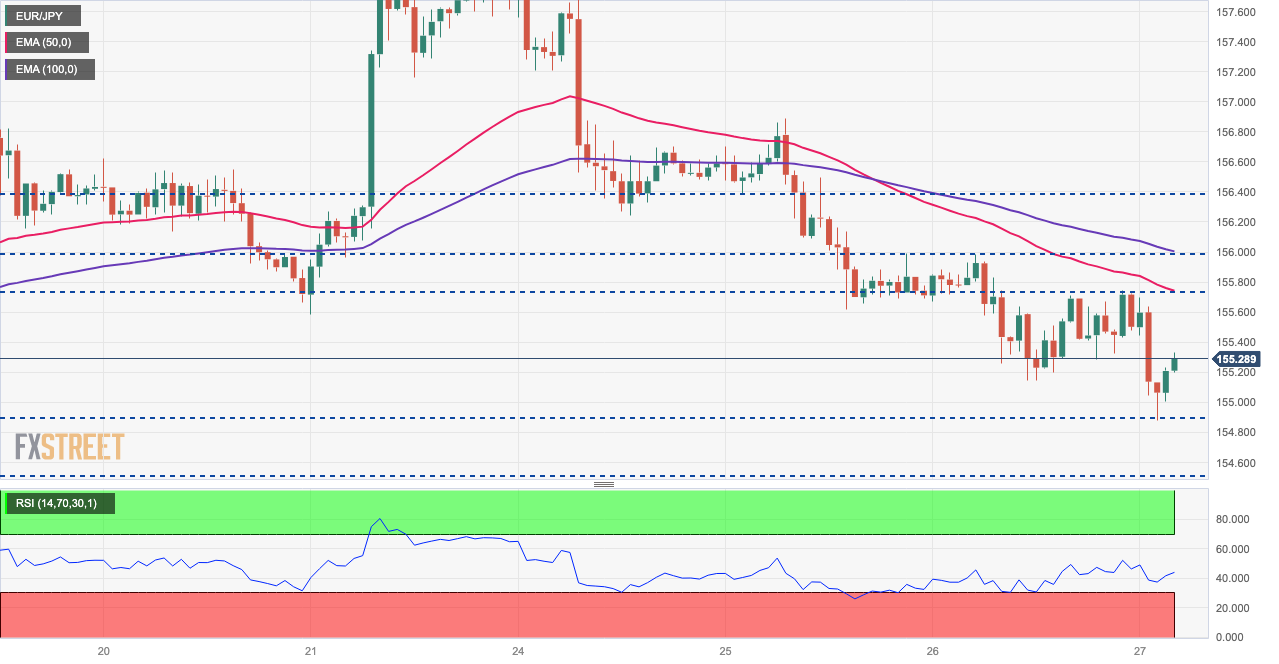 欧元/日元价格分析:在 155.00 区域上方维持守势,关注欧洲央行和日本央行决议