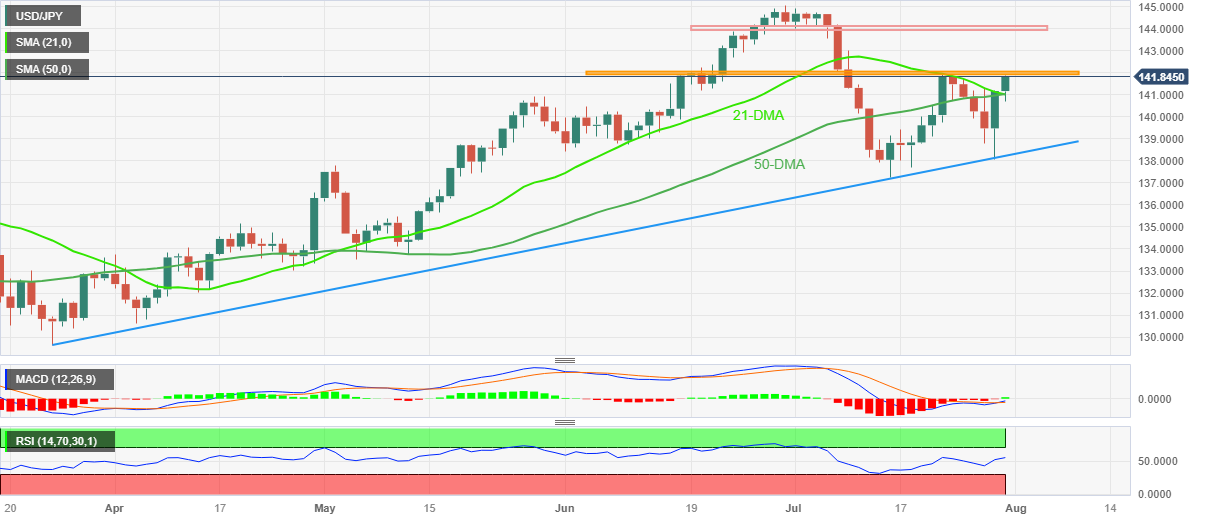 美元/日元价格分析:因日本央行自2月以来首次购债,汇价试探141.80-142.00的阻力区域