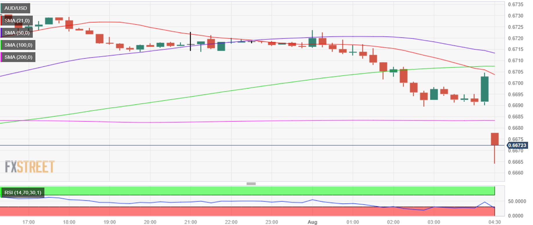 继澳储行决议后澳元/美元出现膝跳反应,澳元/美元下跌了40多个点,以测试0.6660。澳元/美元当天下跌了0.70%。