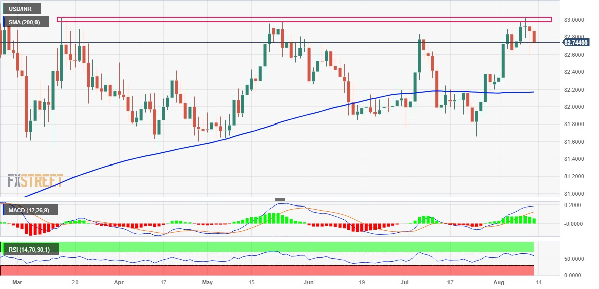 美元/印度卢比价格分析:跌破83.00,缺乏跟进