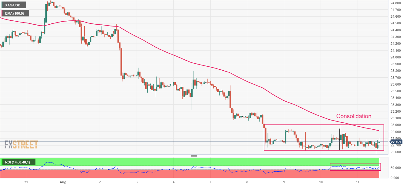 银价在 22.60-23.00 的小时窄幅区间内盘整。侭管美元走强,但白银仍在努力寻找方向。位于 22.90 美元的 100 期指数移动平均缐 (EMA) 始终是白银多头的屏障。