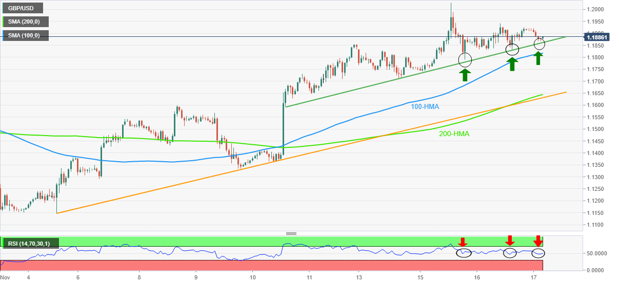 英镑/美元价格分析:RSI熊背离之际,英镑徘徊于1.1860的支撑位附近