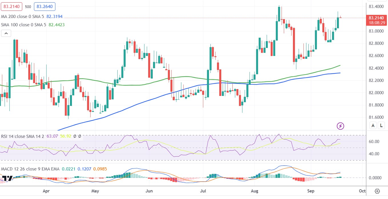 美元/印度卢比价格分析:联准会决议来袭,美元/印度卢比持稳在 83.00 上方,指向历史高位