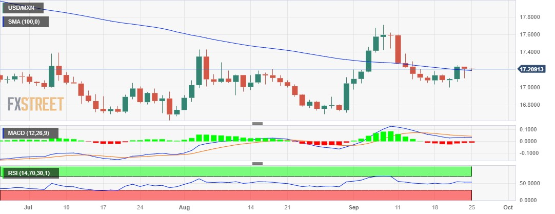 美元/墨西哥比索价格分析:终于维持在 100 日均缐上方,趋势似乎对多头有利
