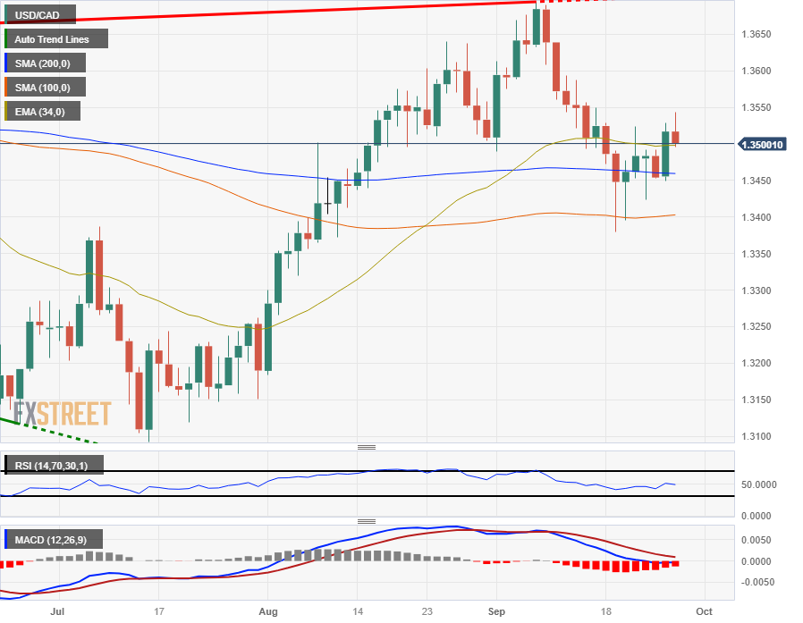 技术形态显示原油价格飙升,因為原油供应紧张继续将桶装原油成本挤压至 13 个月高点,原油价格上升足以使加元保持平衡,从而使美元/加元重返 1.3500 关口。