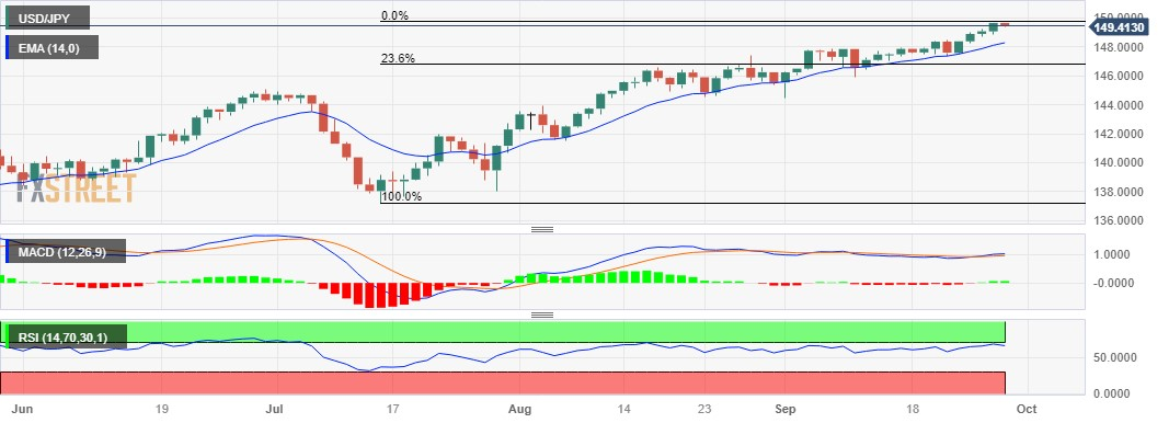 美元/日圆价格分析:从11个月高点149.50附近出现回调