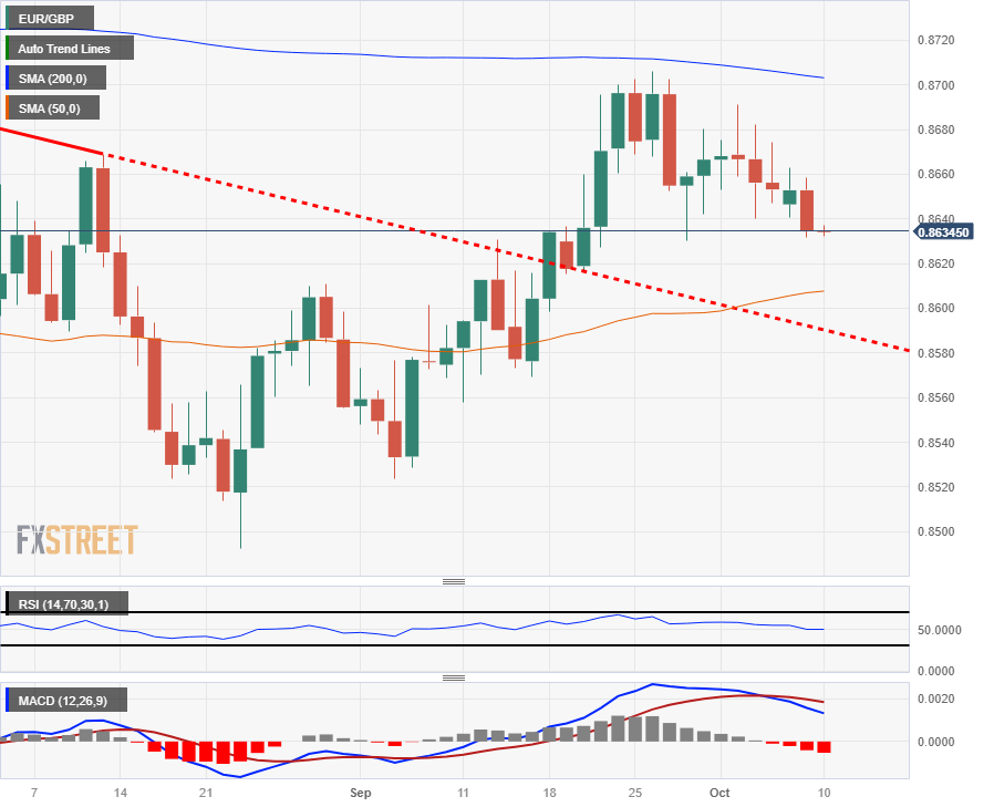 周一欧元兑英镑下跌,遇阻 0.8640 水平