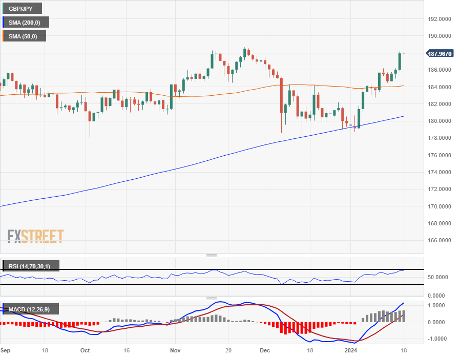 英镑/日圆震盪上涨至六周高位,接近190.00水平