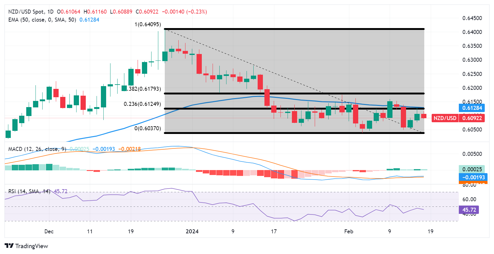 - 纽元/美元上涨两天后回落并跌破关键水准0.6100