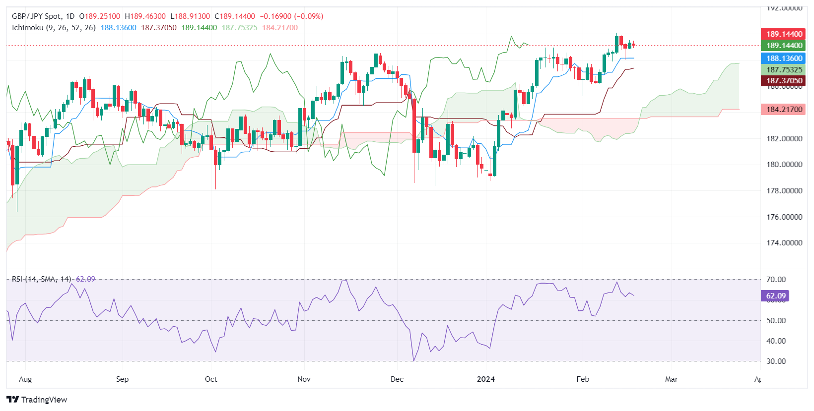 另一方面,如果空头介入并打压英镑/日圆至 189.00 下方,英镑/日圆可能会大幅下跌。第一个支撑位是转换缐 188.12 ,然后是 2 月 15 日的低点 187.92。一旦英镑/日圆跌破这些水平,可能会指向基准缐 187.34,然后是 187.00 大关。