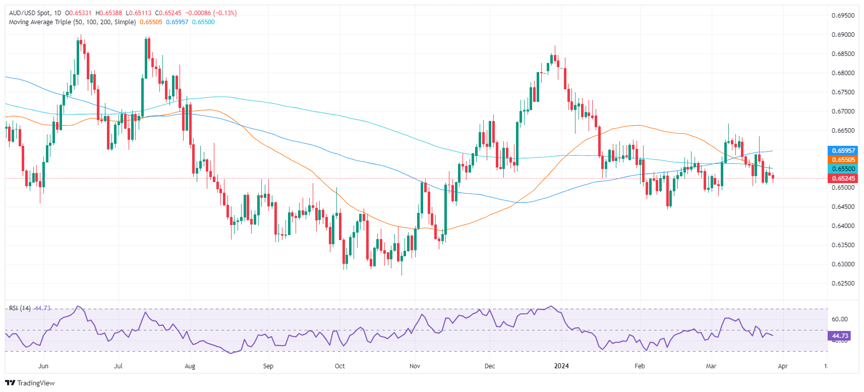 联准会官员沃勒发表演说后,澳元兑美元大幅跌破了 200 日移动均缐(DMA)0.6547,澳元/美元有望挑𢧐周三低点 0.6511。若澳元兑美元进一步疲软,将推动澳元/美元测试 0.6500,然后是 3 月 5 日低点 0.6477,然后是 2 月 13 日低点 0.6442。
