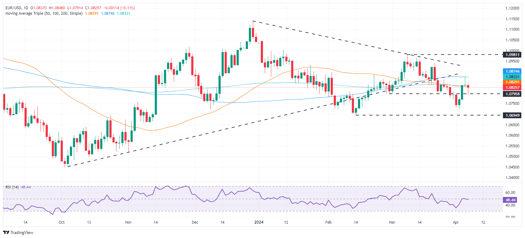 黄昏之星 "图表形态的形成可能為跌破 1.0800 点位铺路。随著相对强弱指数(RSI)走低并跌破 50 中缐水平,欧元兑美元的动能倾向于下行。若跌破 1.0800,则 4 月 2 日低点 1.0724 将暴露,然后是1.0700 。另一方面,𧹒方将在 1.0828/32 附近的 50 和 200-DMA 交汇处遇到阻力。
