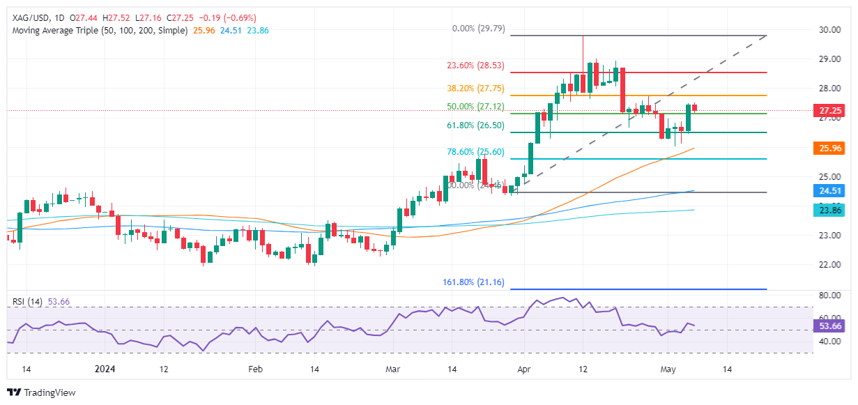 如果多头想重主导,必须突破位于 27.70 美元的 38.2% 斐波那契回档位。一旦突破,就会测试关键阻力位,例如 28.00 美元心理价位,然后是 29.00 美元,然后是23.6%斐波那契位 28.49 美元。