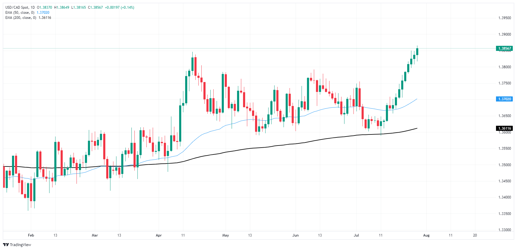 美元兑加元继续上扬,实现了九连涨。自触及近期低点 1.3589 以来,该货币对已上涨了 2%,在 200 天指数移动平均缐 (EMA) 遭到技术性支撑后引发了反弹。