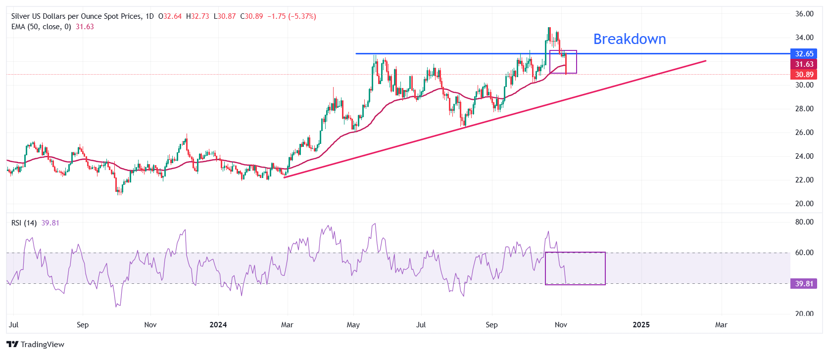 白银价格预测:特朗普胜选,美联储政策成焦点,白银/美元下探至31.00美元附近