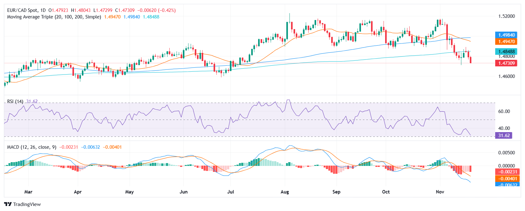 欧元/加元价格分析:该货币对跌幅加深,逼近上周低点,指标深陷消极区域