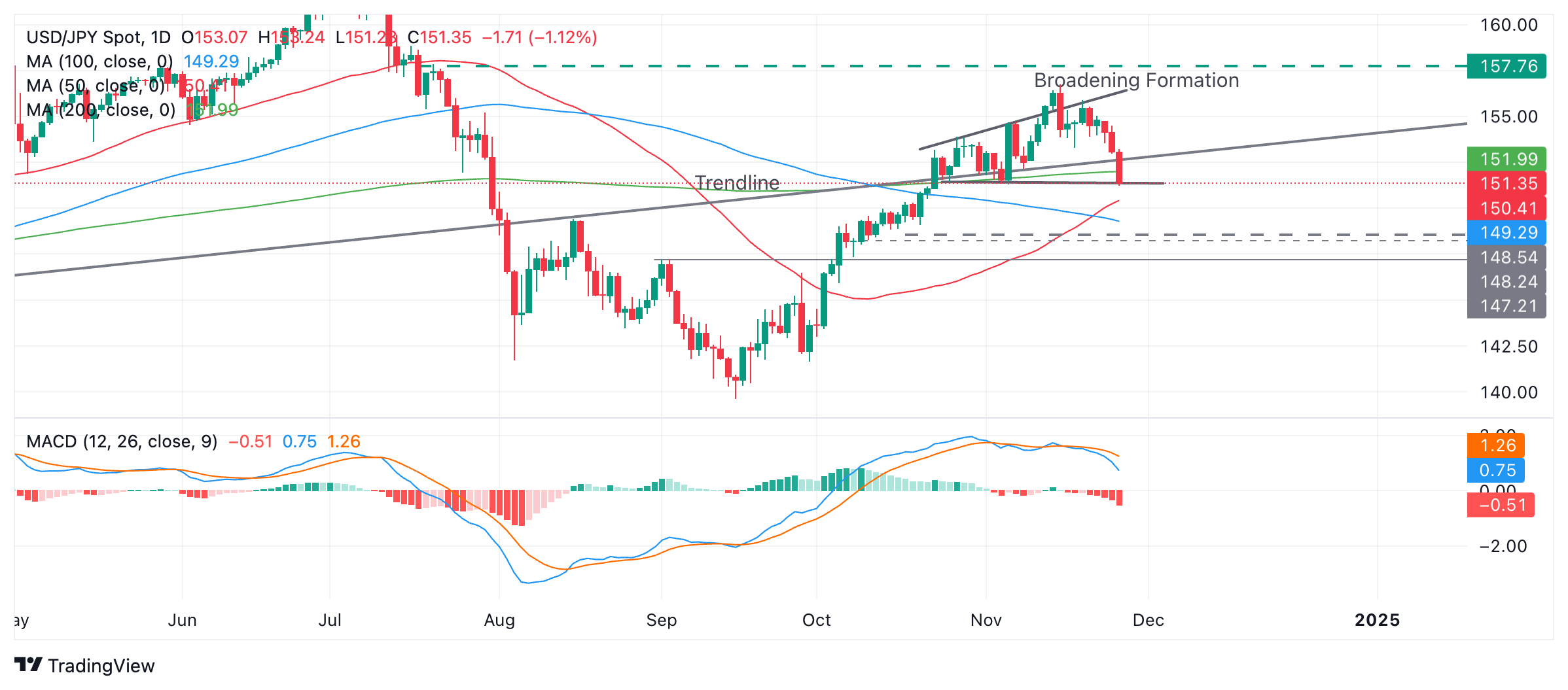 美元/日元价格预测:下跌至扩大形态的底部,有可能跌破