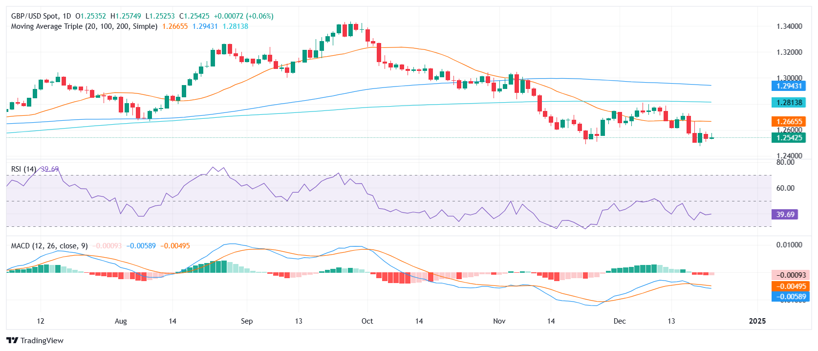 英镑/美元继续面临显著的下行压力。此外,相对强弱指数(RSI)已跌破40.00,这增加了如果保持在该水平以下,进一步下行动能的可能性。此外,移动平均缐收敛/发散(MACD)显示红色柱状图,表明空头强势存在。