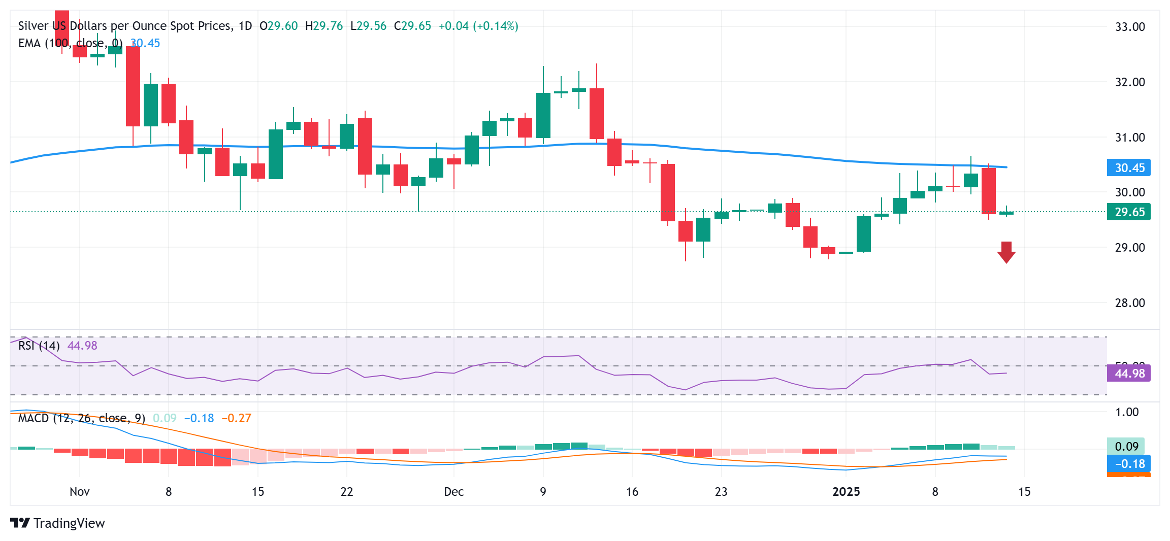 白银价格预测:白银/美元在29.65美元附近挣扎,似乎准备进一步走弱